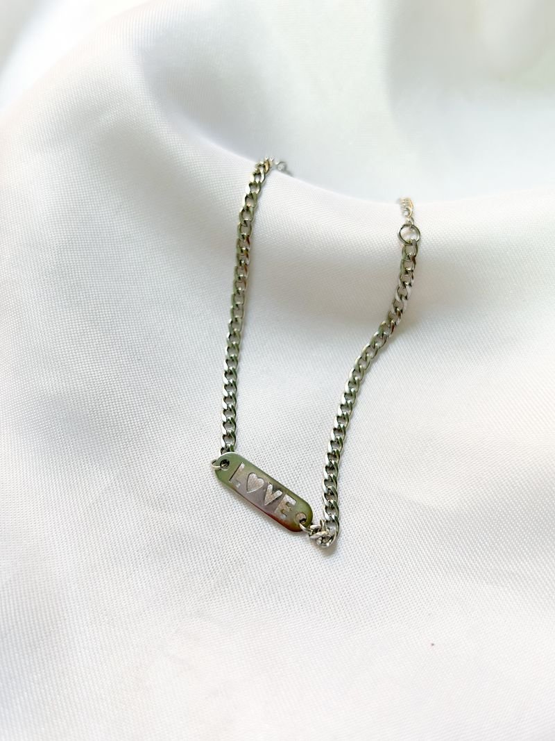 DESCRIÇÃO:PULSEIRA INOX BI PARTIDA GRUME PLACA LOVE TAMANHO PULSEIRA:17CM+3CM EXTENSOR TAMANHO PINGENTE:20MM X 5,8MM ESPESSURA CORRENTE:3MM MATERIAL:AÇO INOX 316L